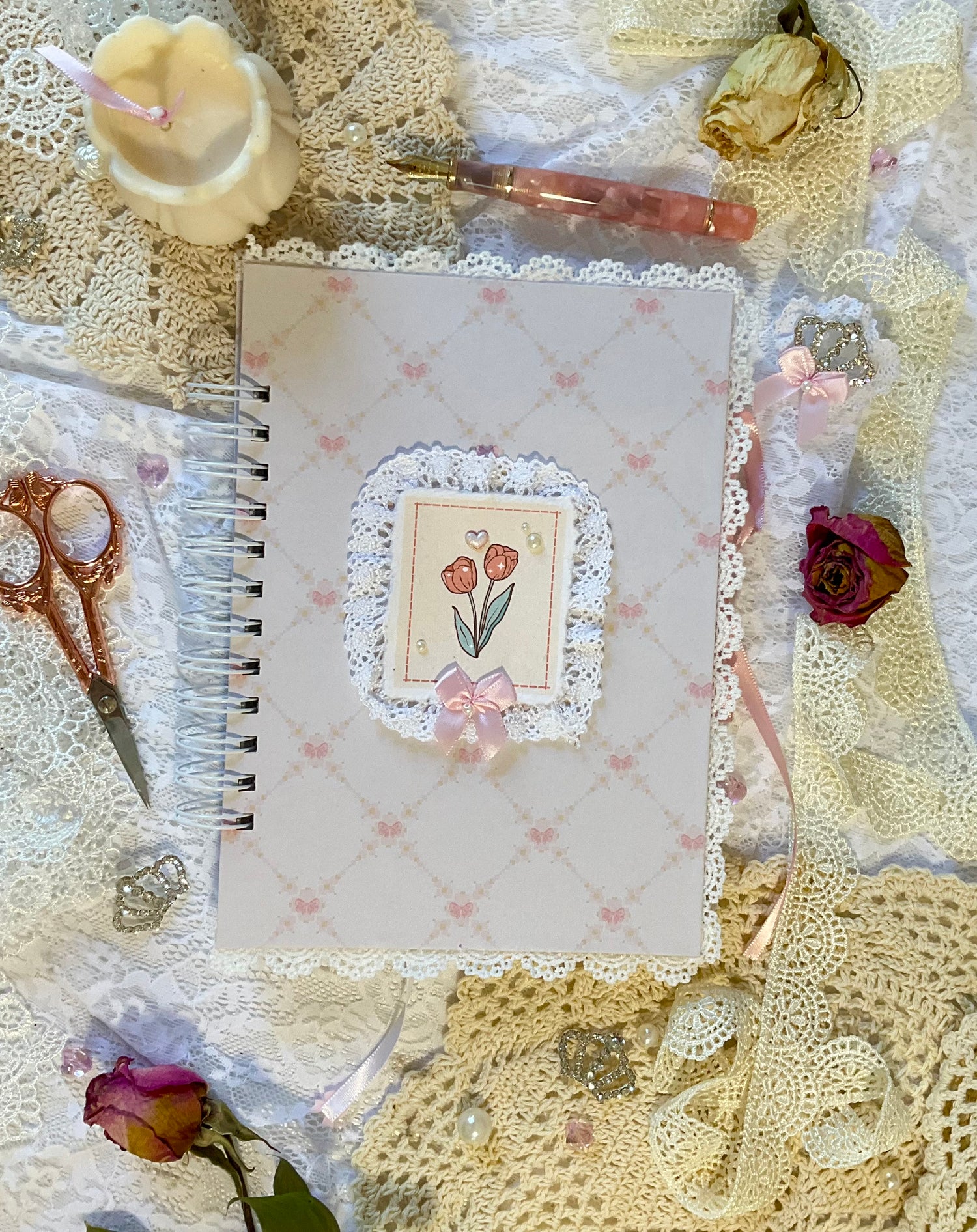 ♡ Cierre en cinta y divisor de página con un delicado detalle final.