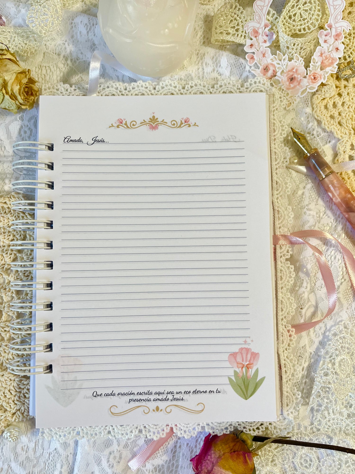 Déjate envolver por la elegancia, la ternura y la presencia de Dios en cada página. Este diario no es solo un cuaderno… es un espacio sagrado para tus oraciones, tus sueños y tus momentos más íntimos con Jesús.