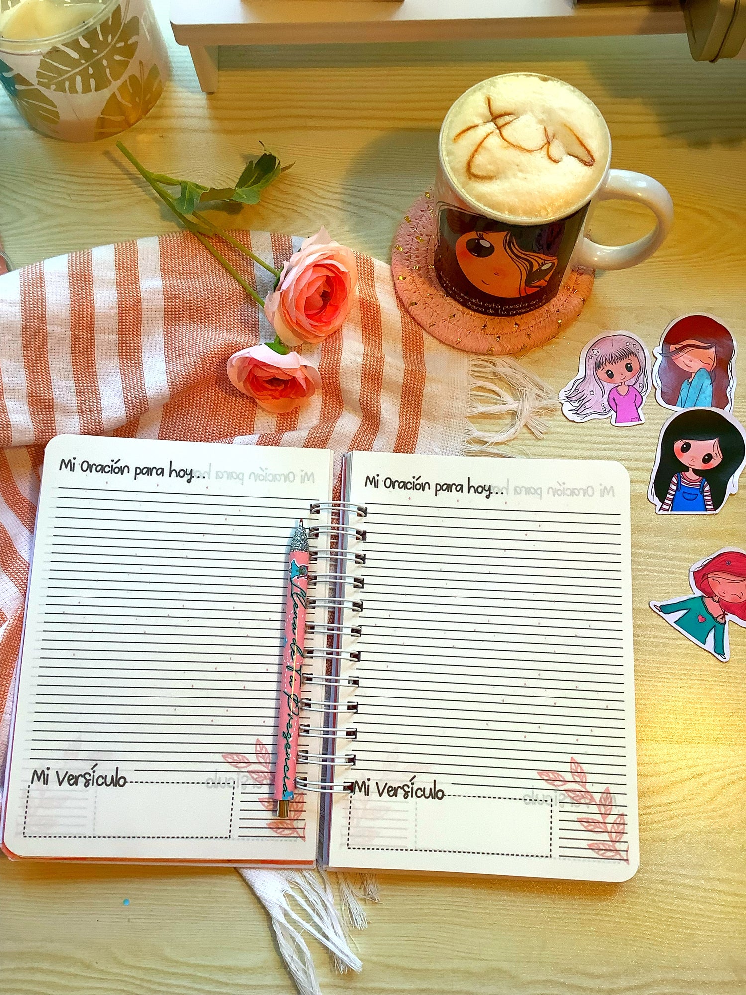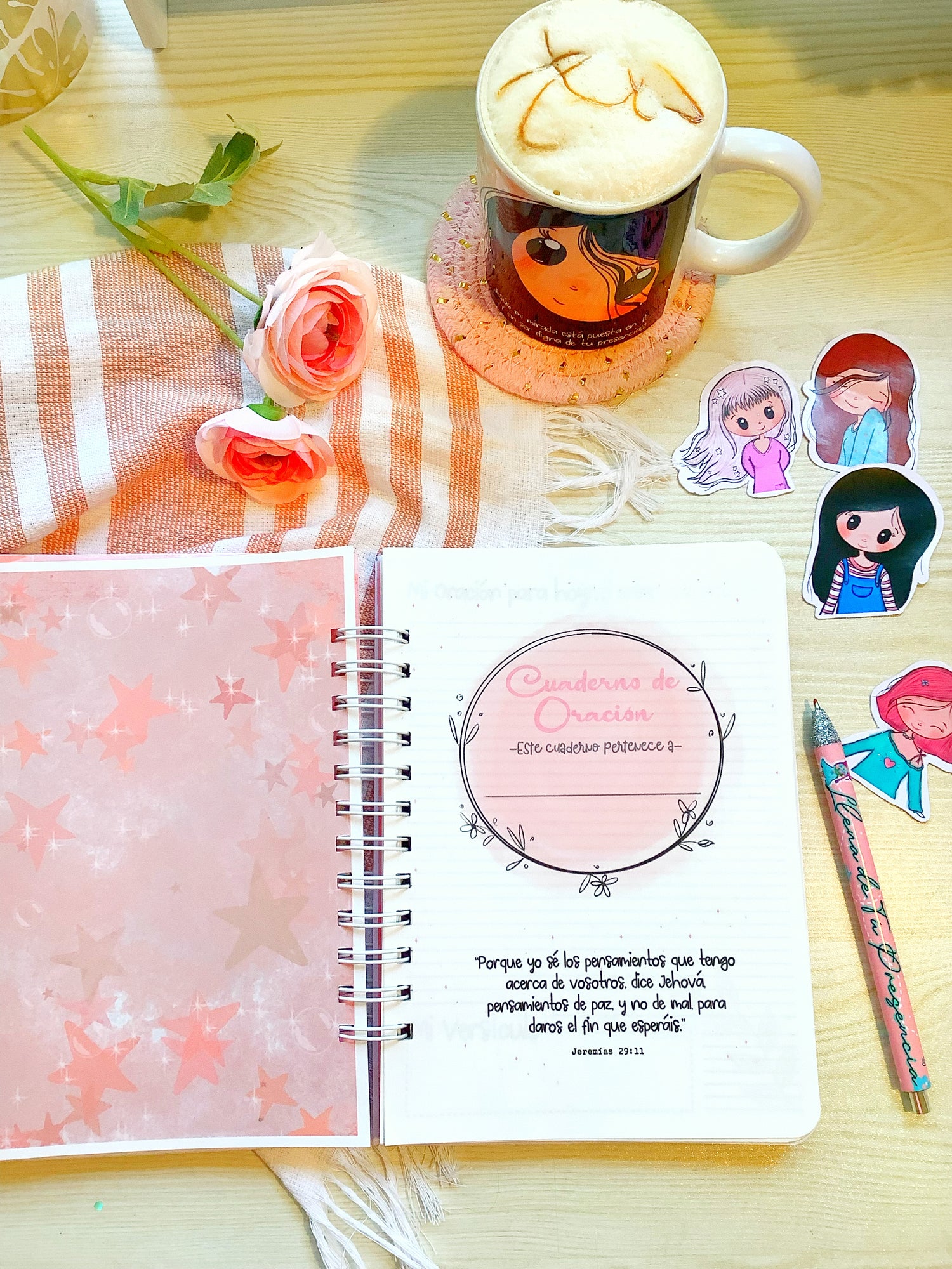 Esta linda libreta es ideal para escribí esas oraciones hermosas que llegan a tu mente y tu corazón, y porque no, usarla como Devocional…