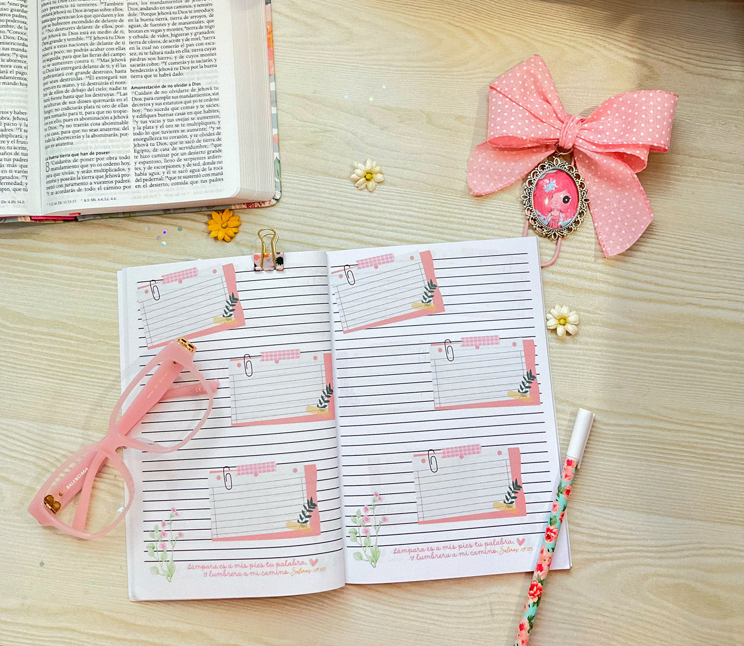 Son ideales para tus momentos de quietud, para escribir cartas a Jesús, anotar lo que aprendes en la Palabra y llevar contigo aquello que Dios va sembrando en tu interior. Un conjunto pensado para acompañarte con ternura, fe y propósito en lo cotidiano.