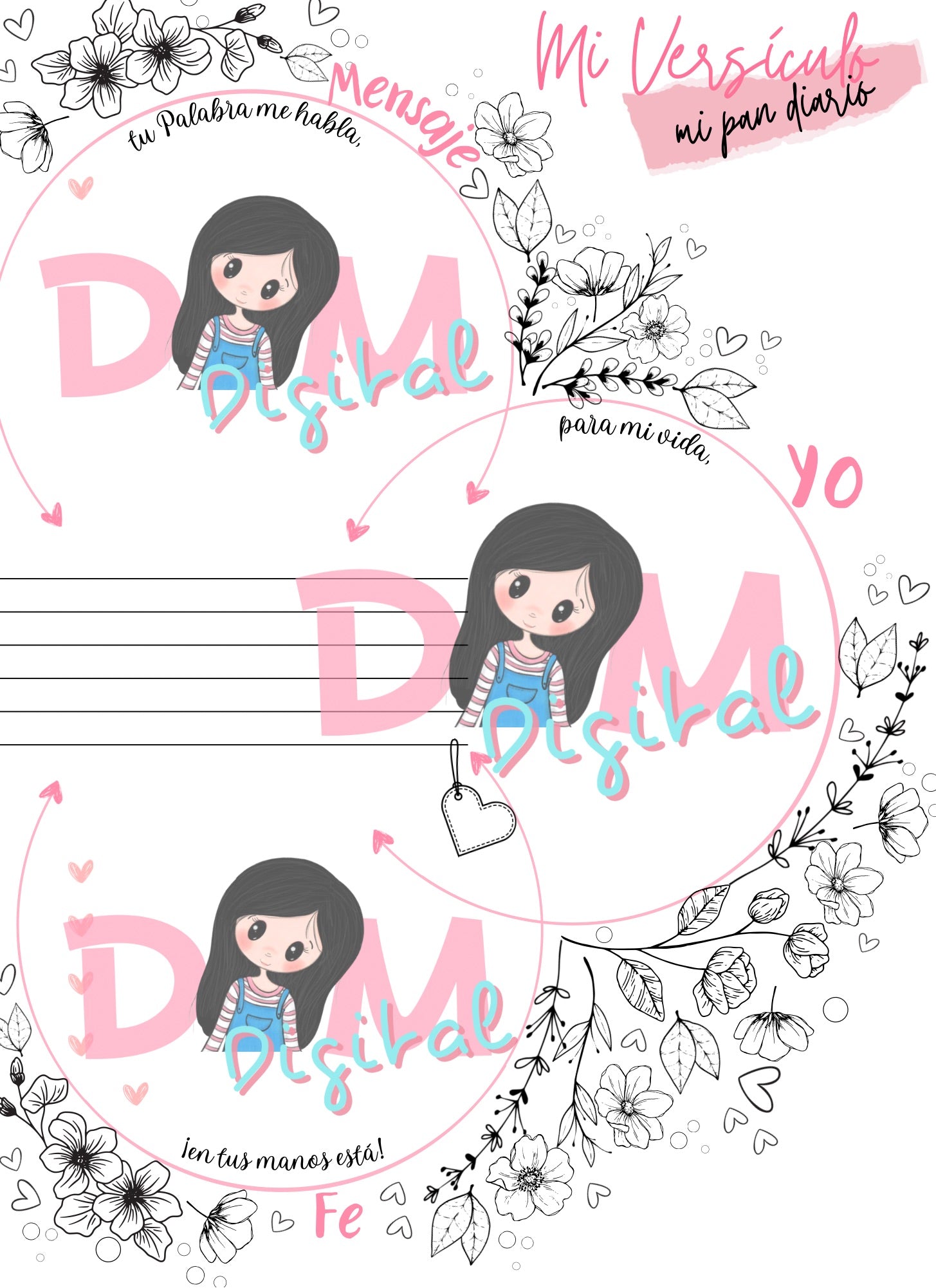Dos páginas imprimibles creadas para acompañarte en tu tiempo diario con la Palabra. Mi Versículo, Pan de Cada Día es un espacio sencillo y especial donde puedes escribir, guardar y meditar en ese versículo que Dios pone en tu corazón cada día.